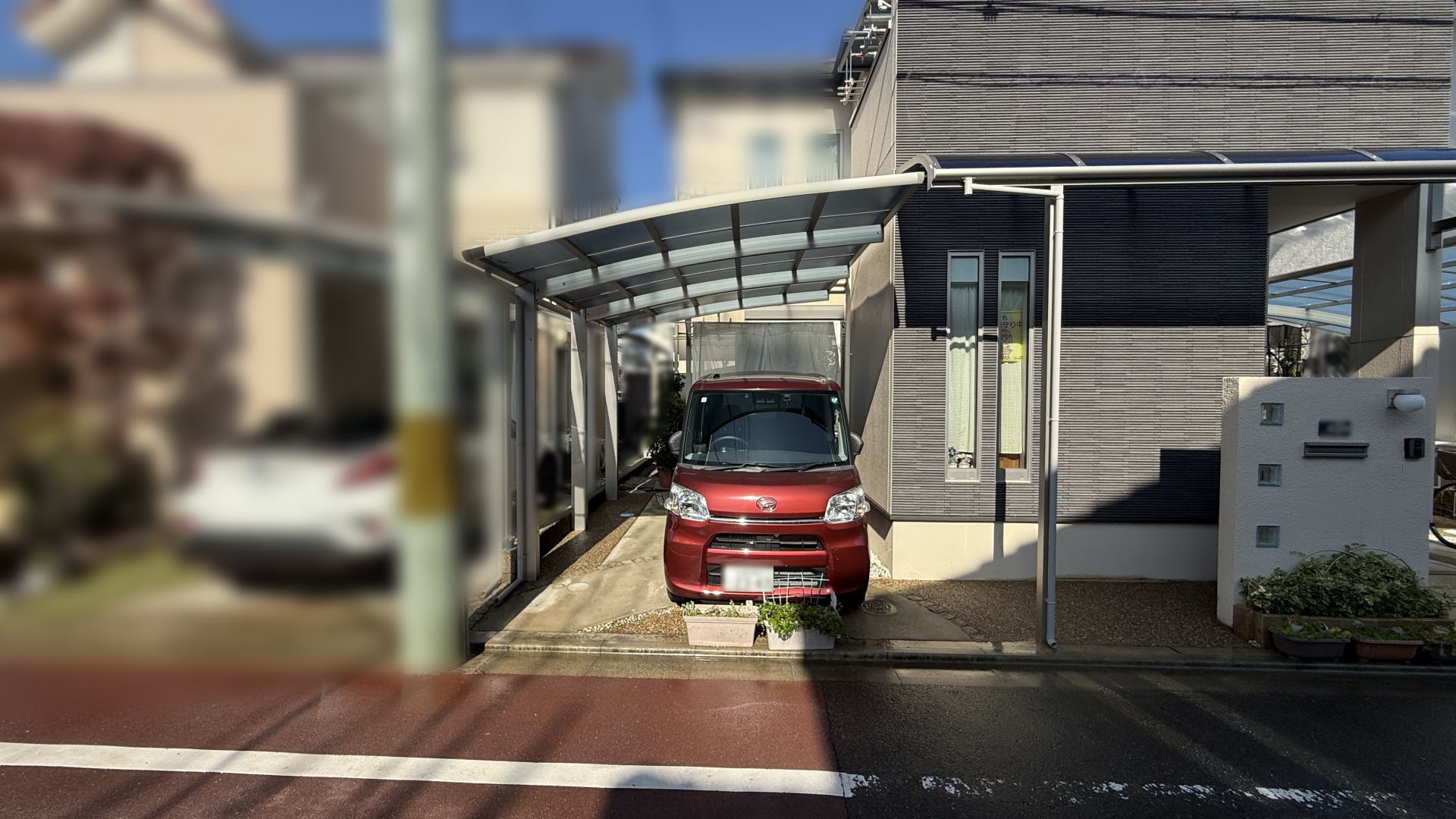 屋根ふき材が熱線遮断ポリカなので日光による熱量を抑えることでコンクリートの照り返しを防ぎ、カーポート内及び車内の温度を抑える熱線遮断効果があります。クリアマット色なので遮熱性がありながら採光性も高い屋根材となっています。