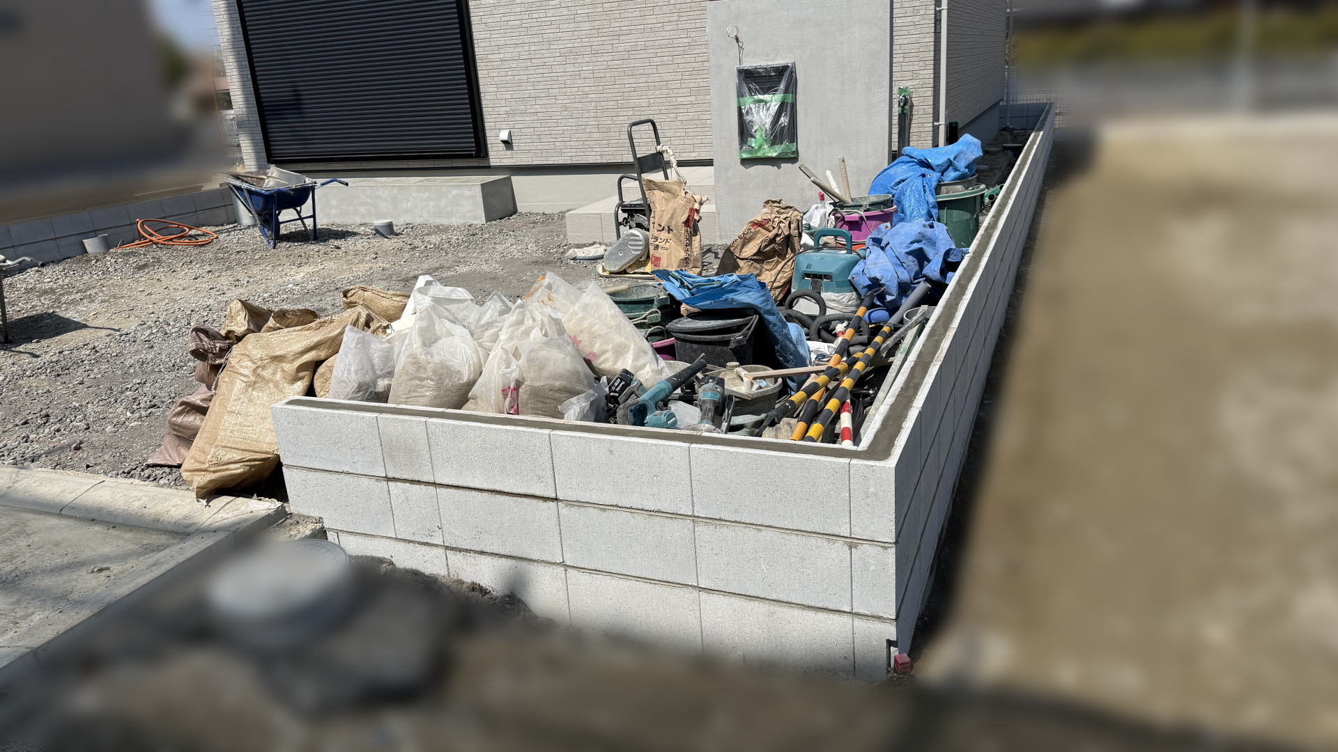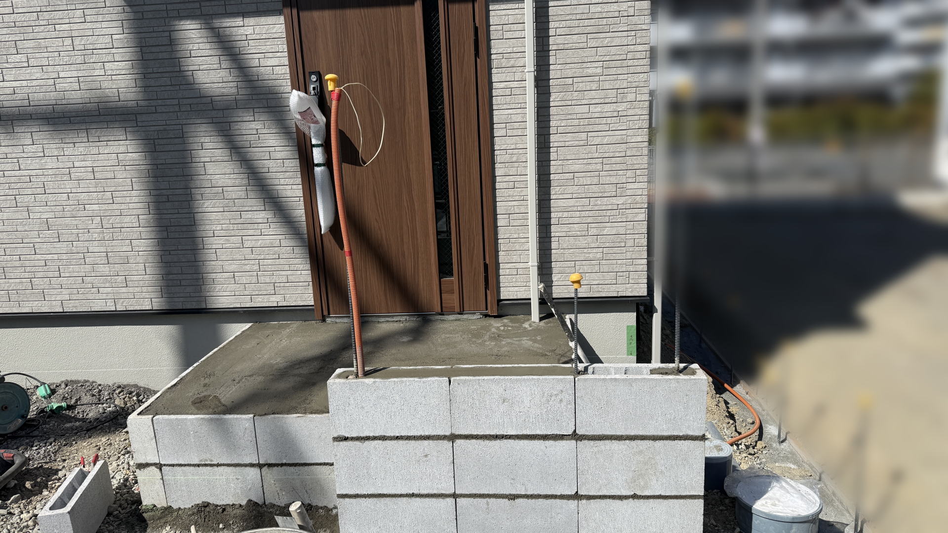 枚方市F様邸 カースペース 踏み台下地ブロック積み