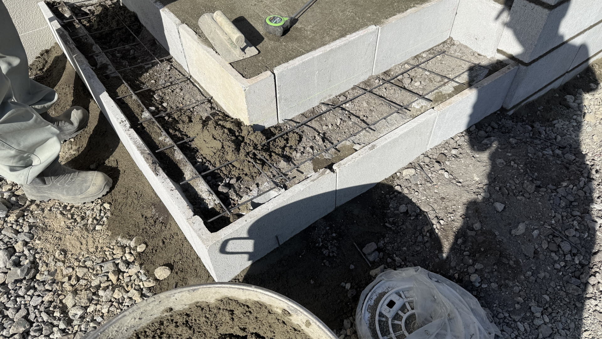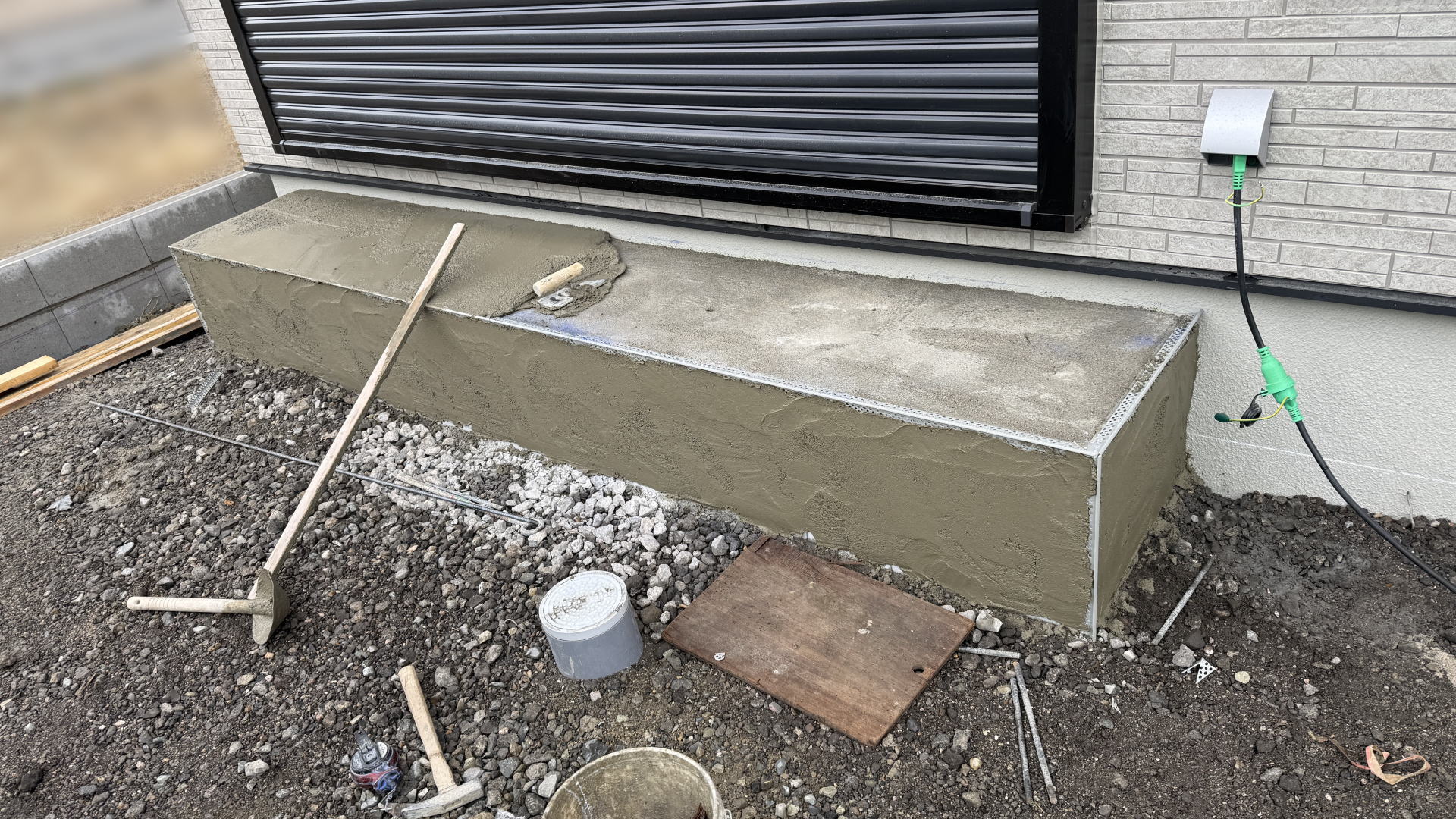 踏み台にコーナー定規を設置し、モルタルを打設して金コテ仕上げにしました。