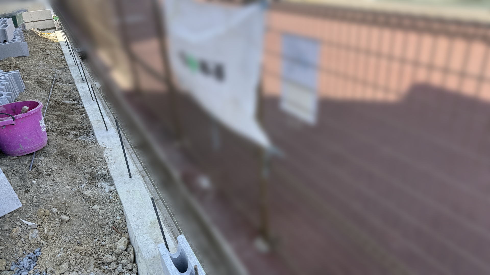 枚方市F様邸 隣地境界沿い 型枠設置・鉄筋組み枚方市F様邸 隣地境界沿い 型枠設置・鉄筋組み