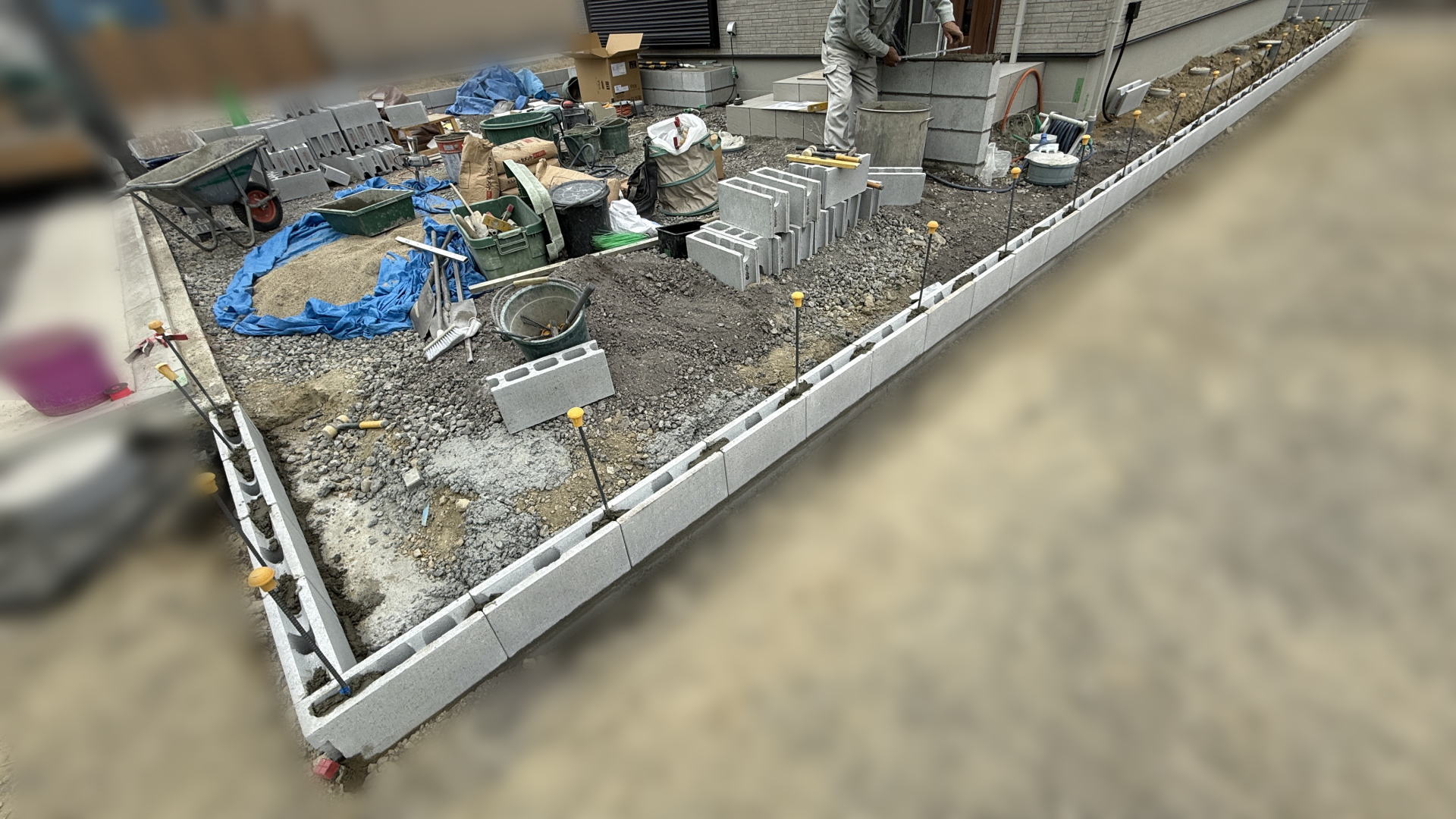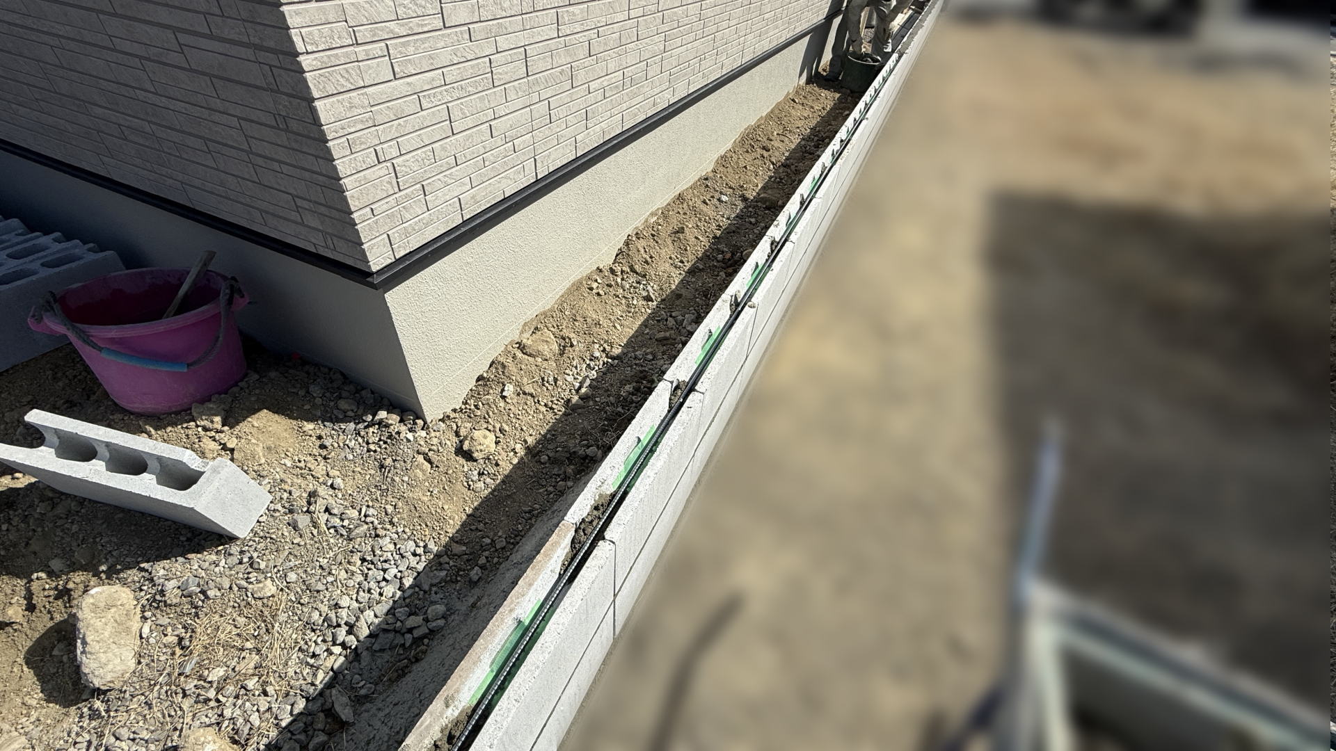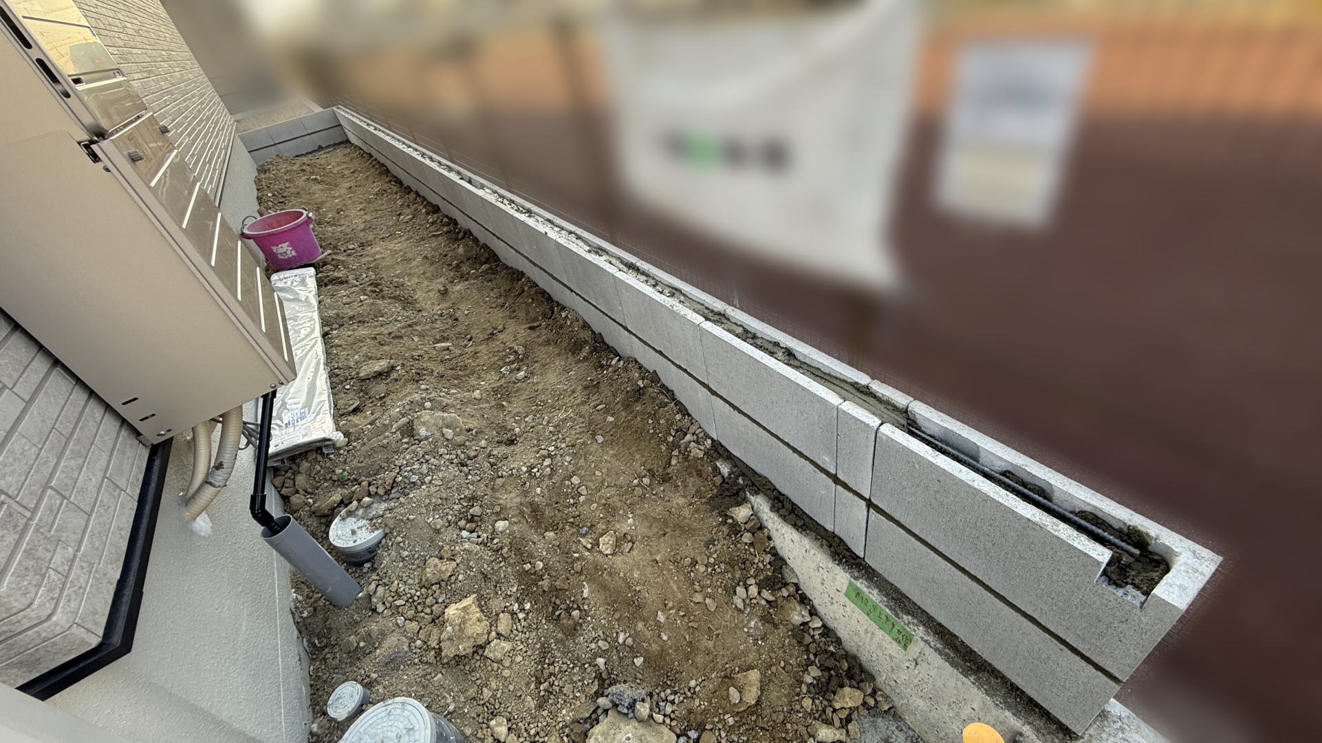 枚方市F様邸 隣地境界沿い ブロック基礎打設枚方市F様邸 隣地境界沿い ブロック基礎打設