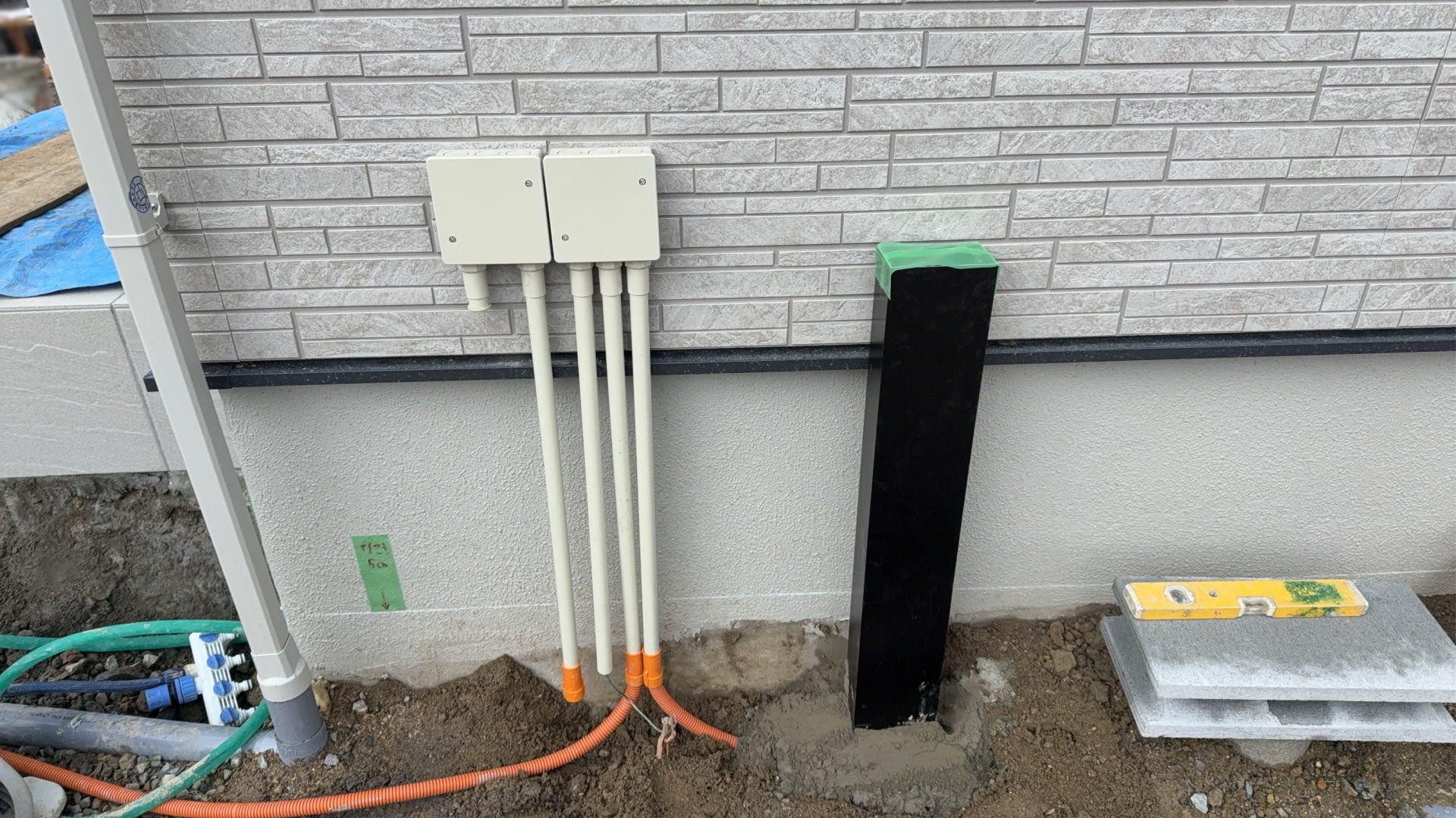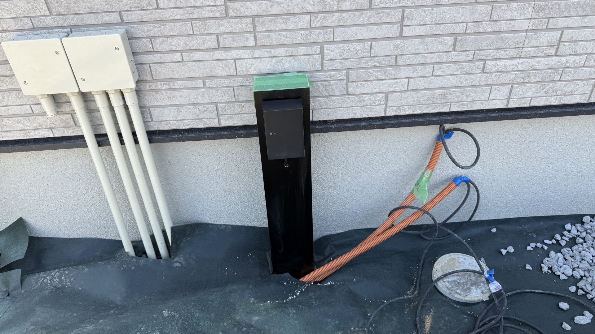 カーポートを設置し、柱にコンセントを設置しました。