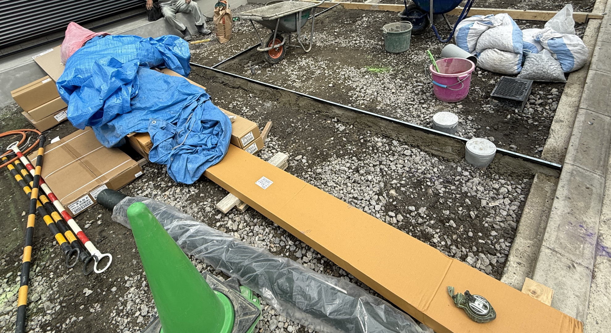 3月24日(火) サイクルポート・カーポート・コンセント・成形伸縮目地設置・門柱塗装・砕石入れ