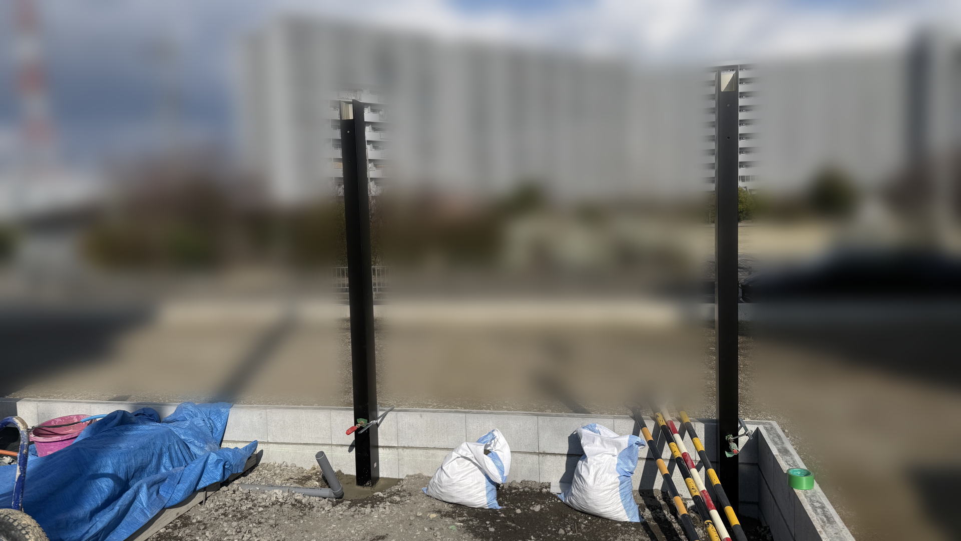 サイクルポートの柱を設置しました。