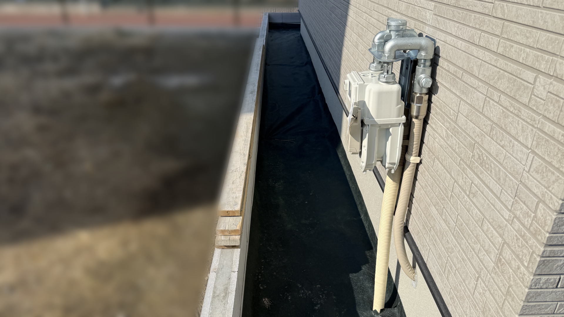 枚方市F様邸 建物周囲 防草シート敷設 デュポン社 ザバーン136G枚方市F様邸 建物周囲 防草シート+砕石敷き