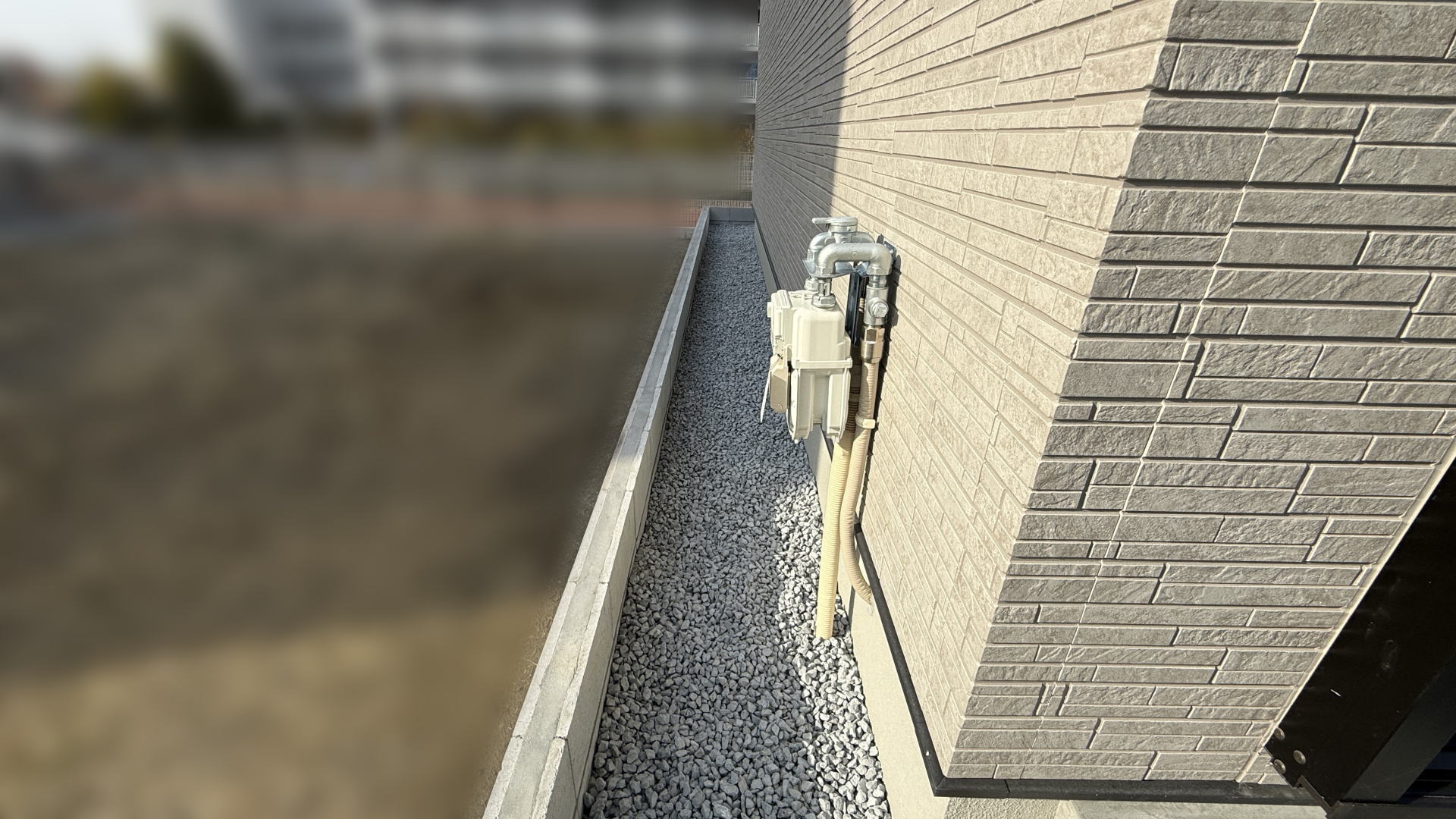 枚方市F様邸 建物周囲 防草シート+砕石敷き