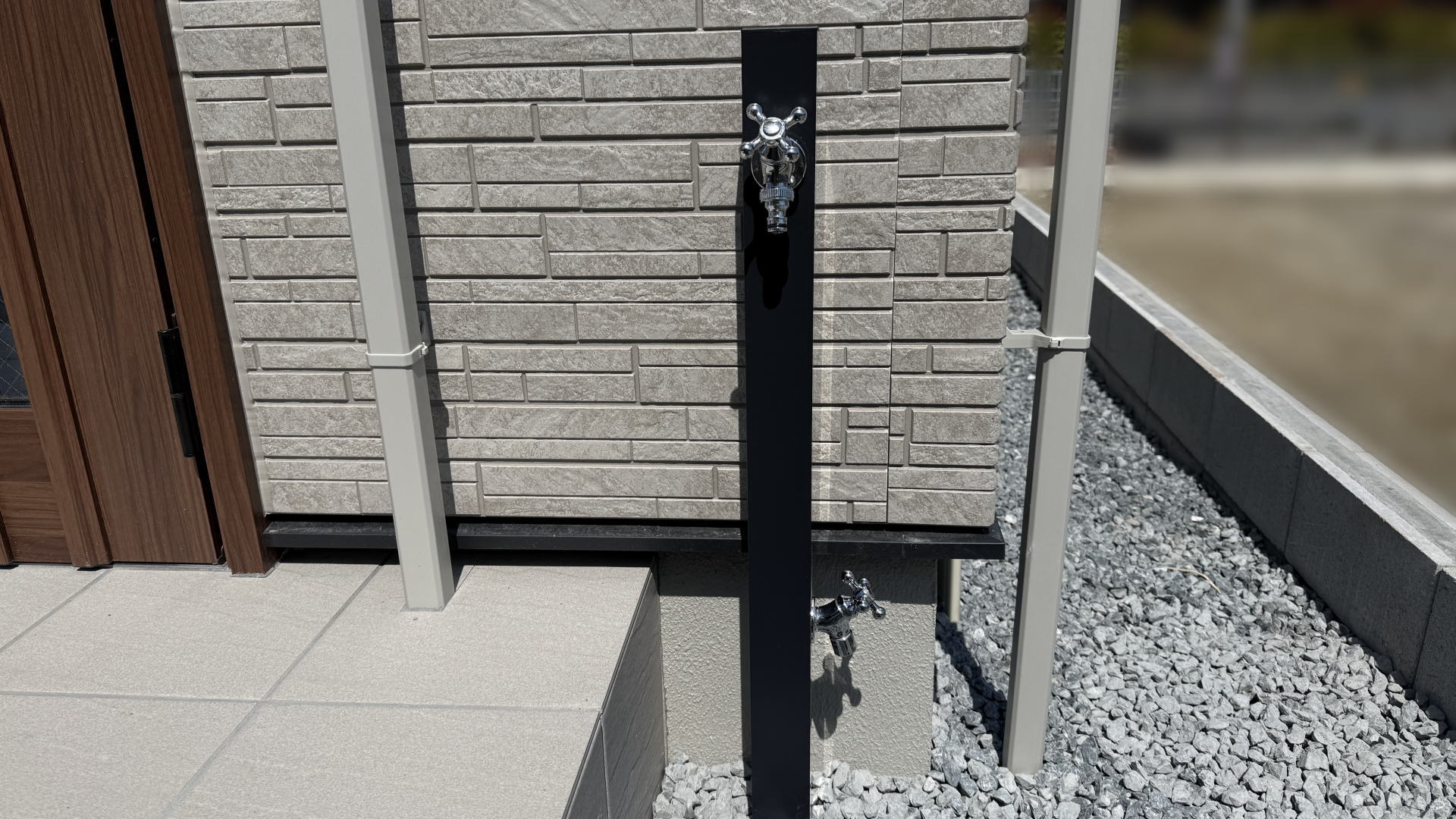 枚方市F様邸 アプローチ 立水栓設置 ユニソン スプレスタンド60ソリッド/オフブラック 左右仕様