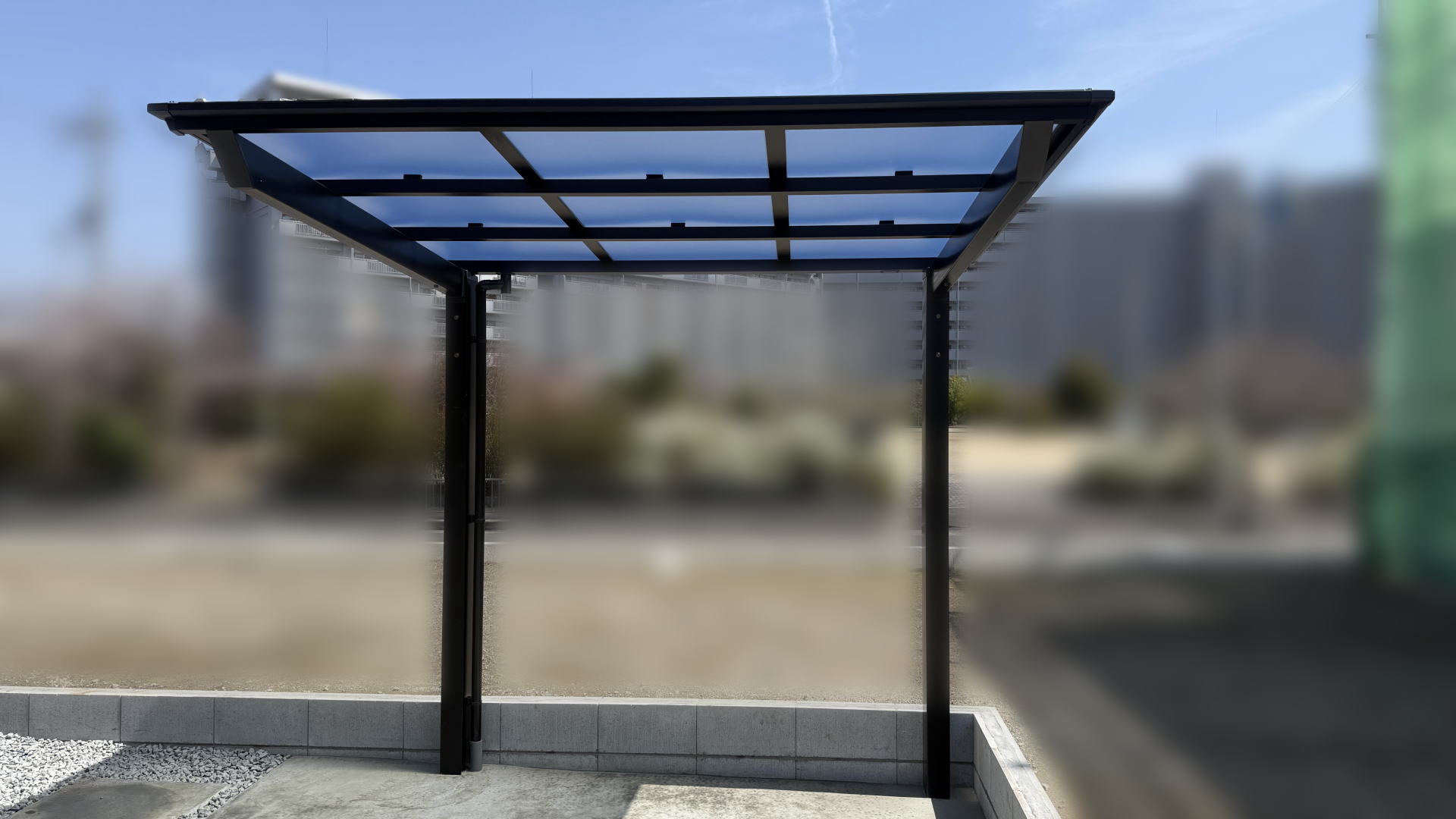 枚方市F様邸 自転車置き場 LIXIL ネスカFミニ18-22型/ブラック 熱線吸収ポリカ/クリアマットS