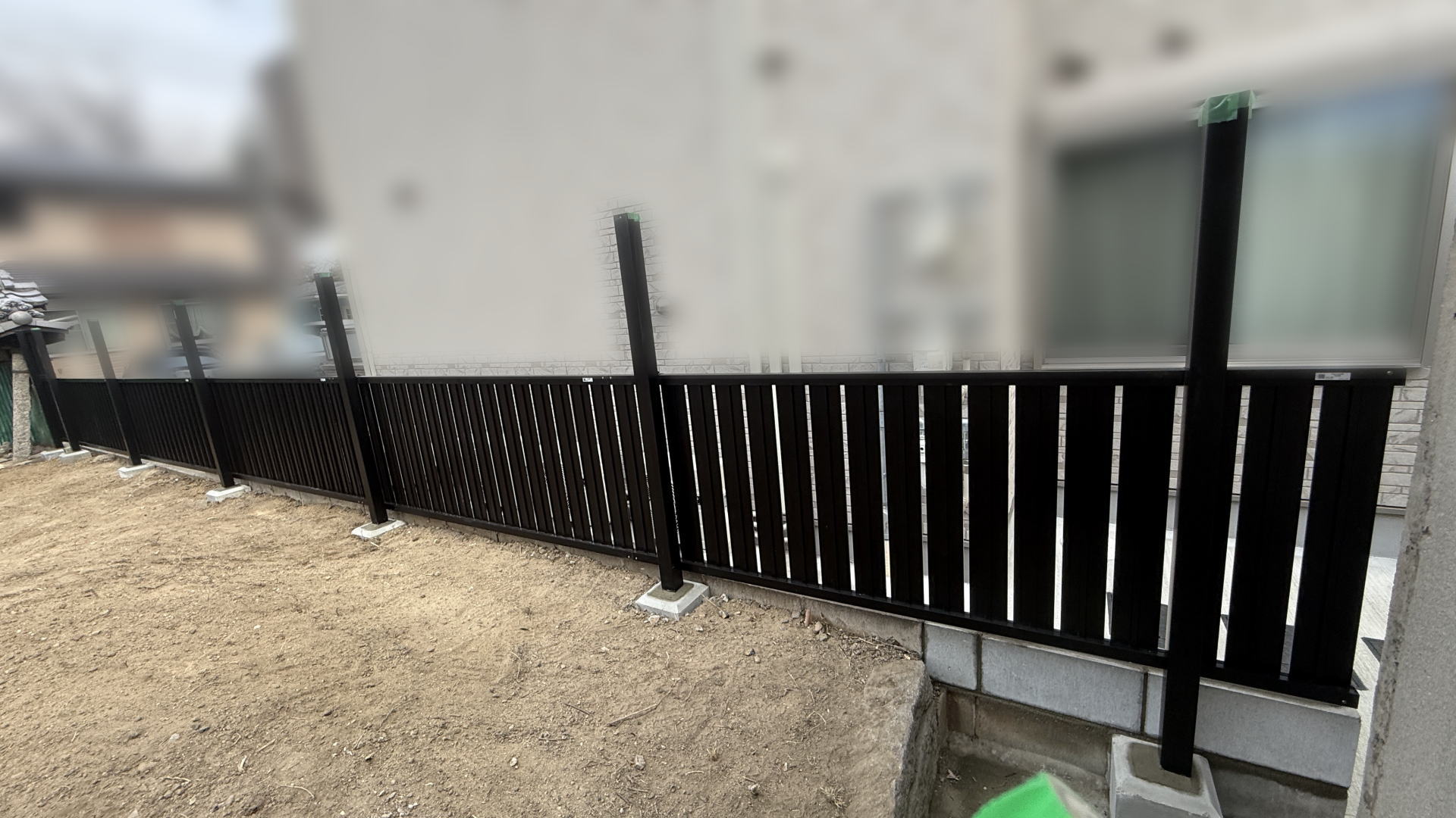 本工事では、既存のフェンスおよび植栽を撤去し、新たに柱を設置したうえで目隠しフェンスを新設。