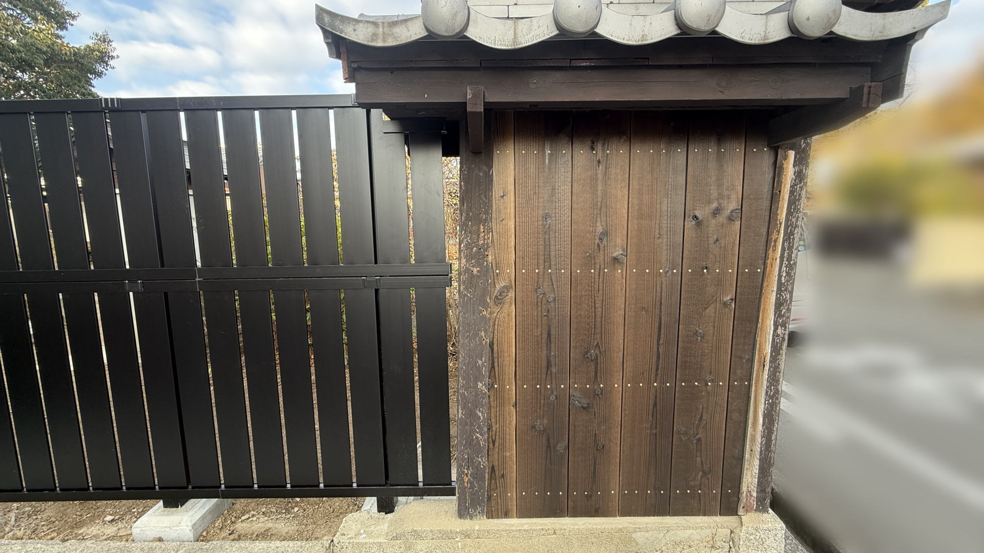 施工前は、既存のネットフェンスにトタンを立てかけて隣地からの視線を遮っている状態で、美観や耐久性の面で課題がありました。