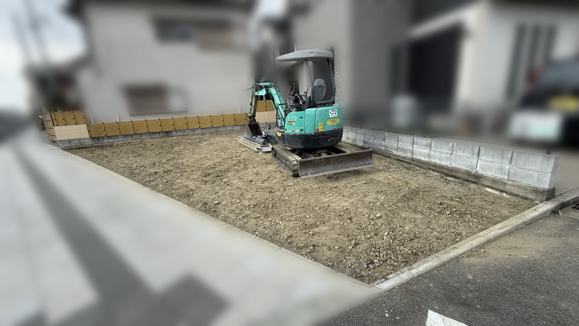 砕石を敷いて均し、周囲にトラロープを張って工事が完了しました。
