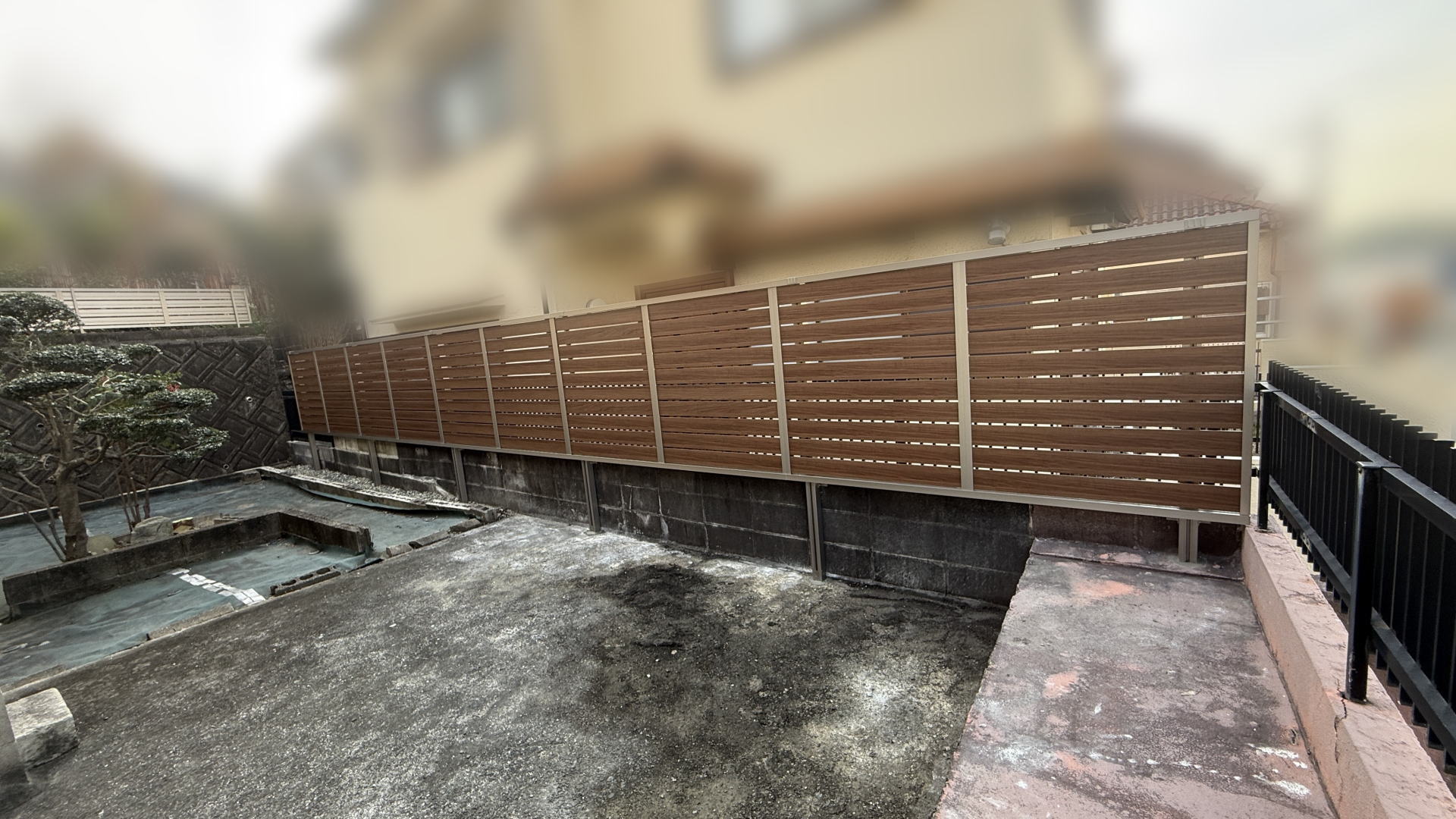 高槻市U様邸にて、道路側および隣地側からの視線を抑え、プライバシー性を高めるための外構リフォーム工事を行いました。