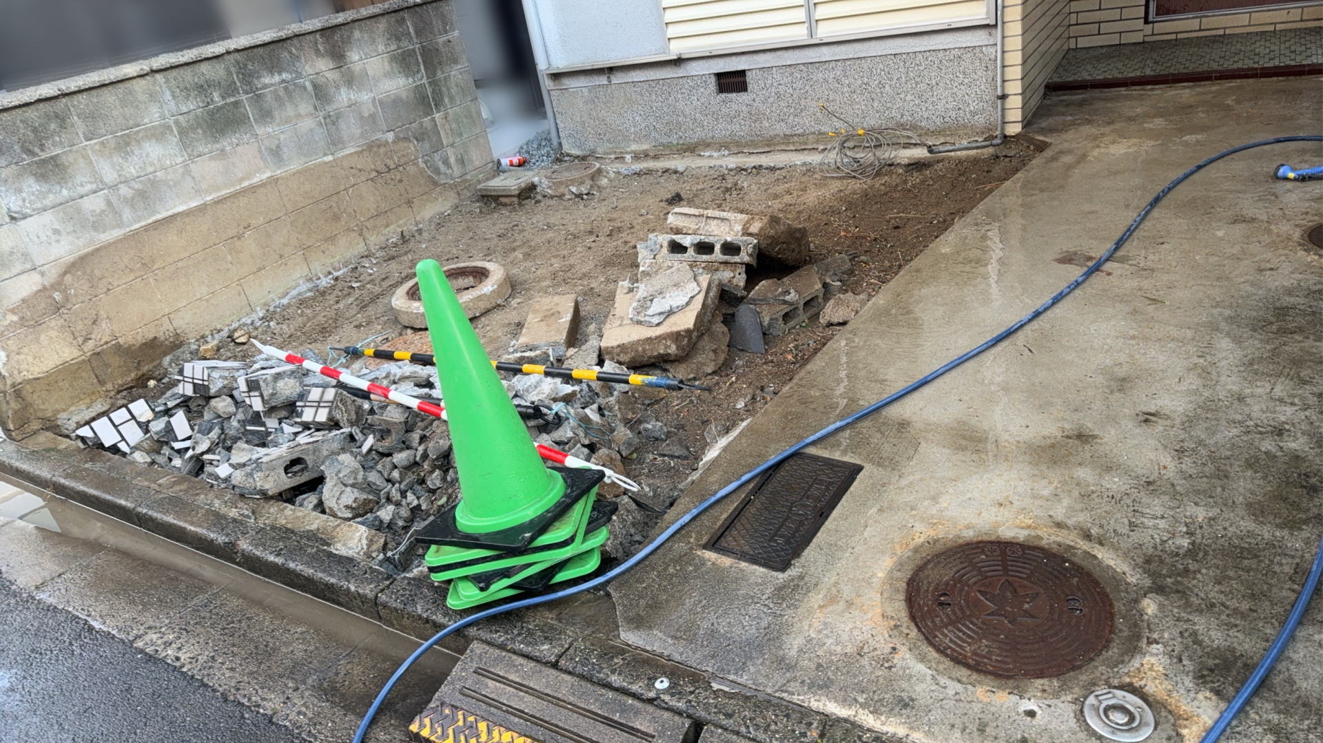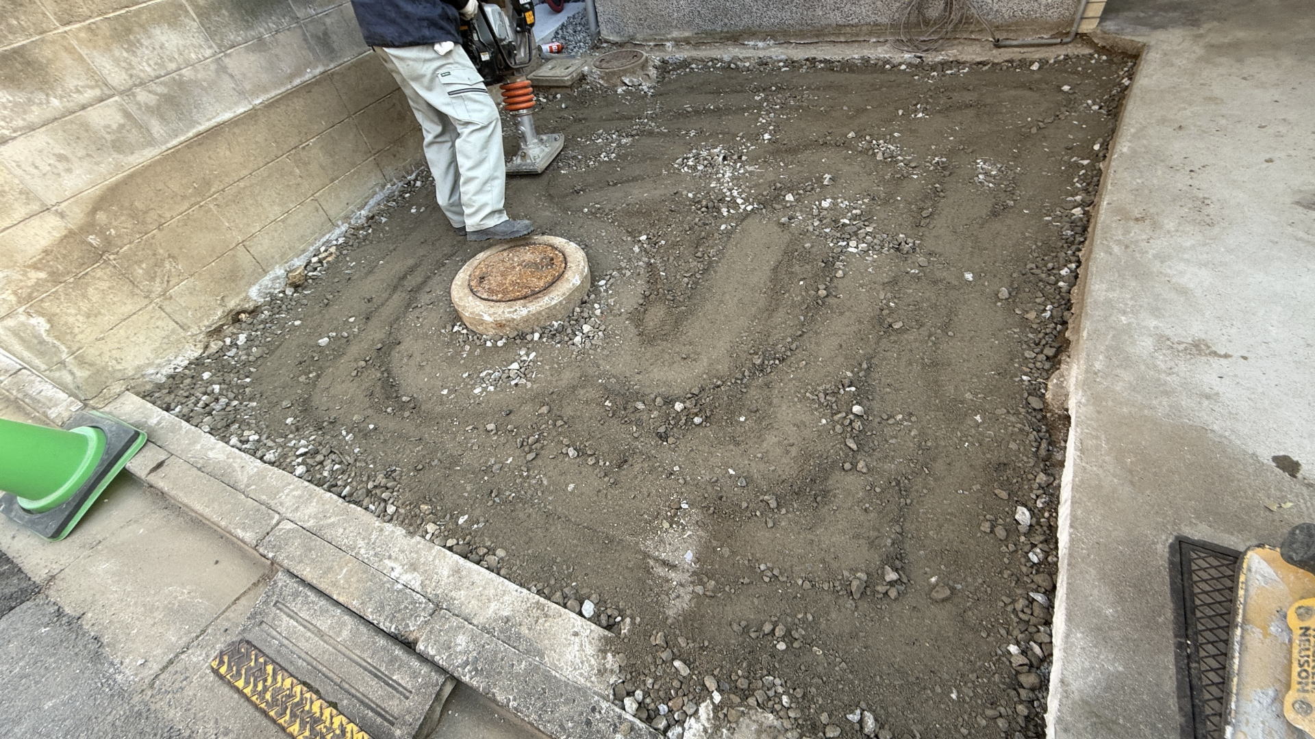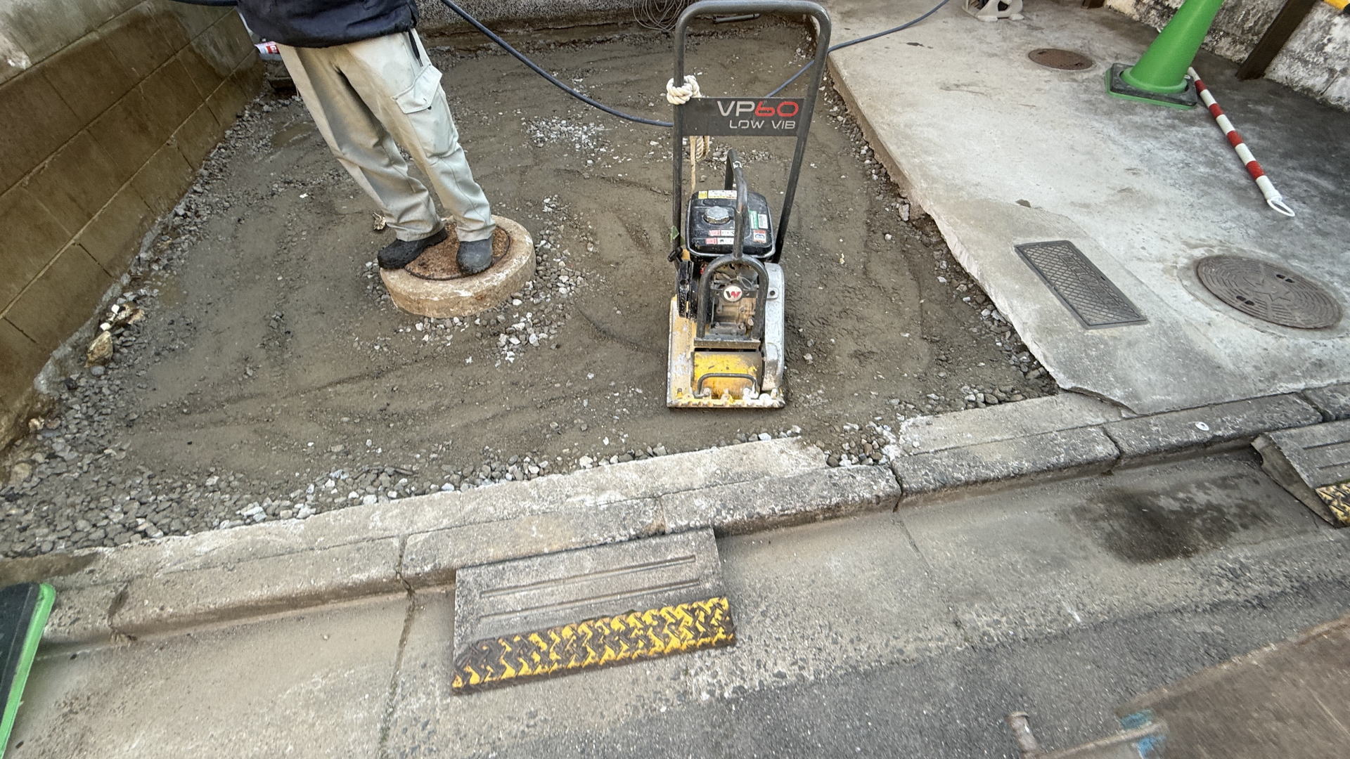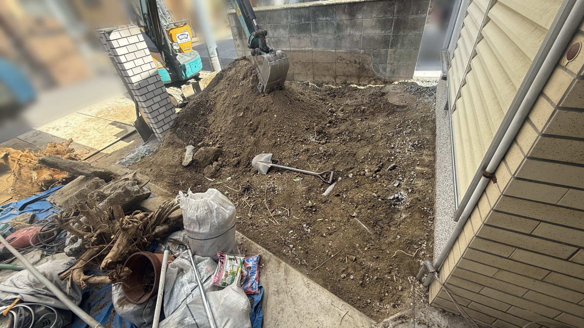 2026年3月10日(火)・12日(木) 高槻市U様邸 外構リフォーム工事 2026.3.13 高槻市K様邸で外構リフォーム工事を行います。 お庭を撤去し、工事車両が駐車できるようにします。 3月12日(木) 下地調整 カースペース 再生砕石を敷いてタンピングランマーで転圧して締固め、プレートランマーで転圧して均しました。 残りの工事を建物のリフォーム完了後に行います。 3月10日(火) 工事開始 カースペース 重機で土を掘削し、門柱を撤去しました。 カテゴリー: 2026年外構リフォーム
