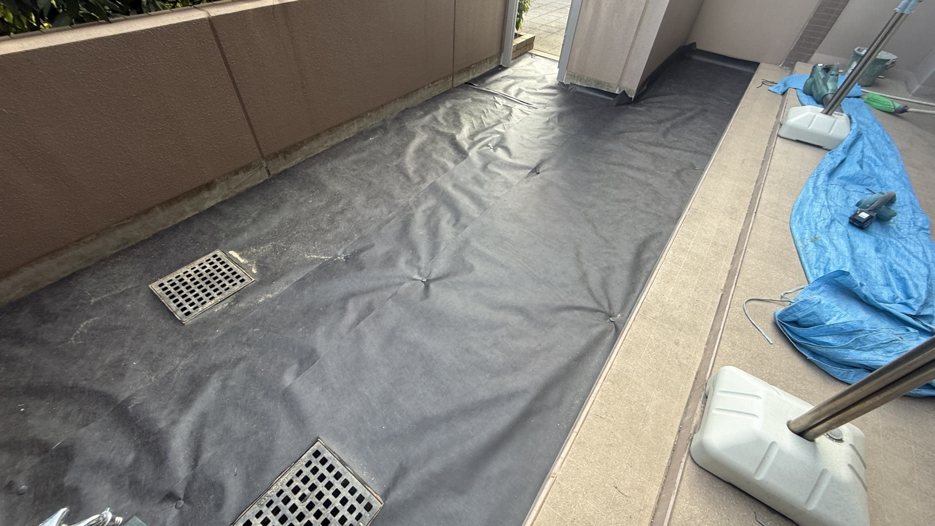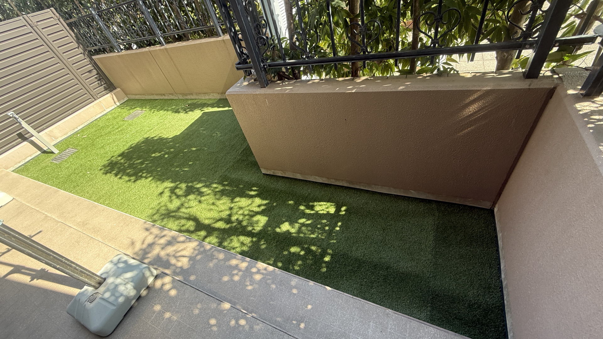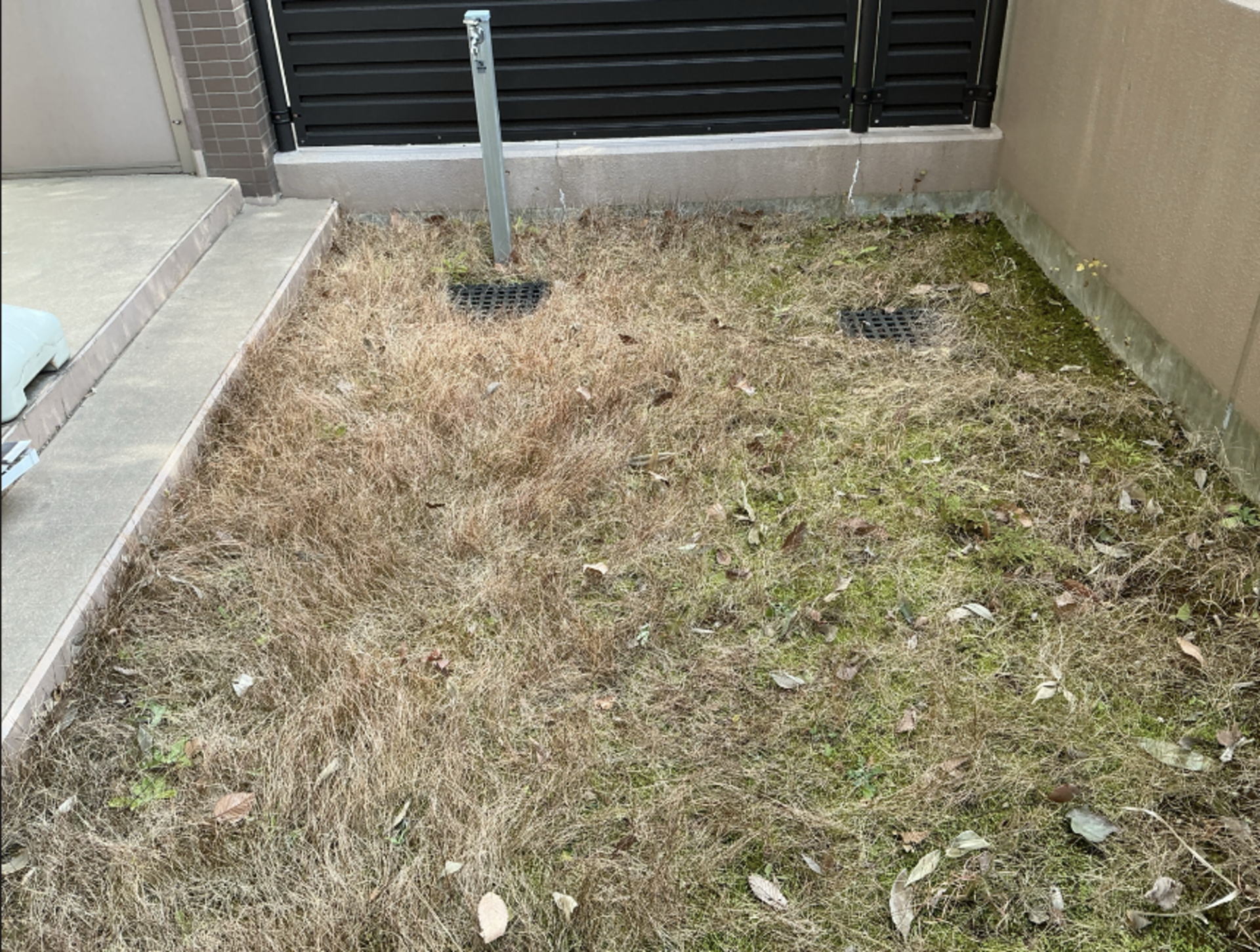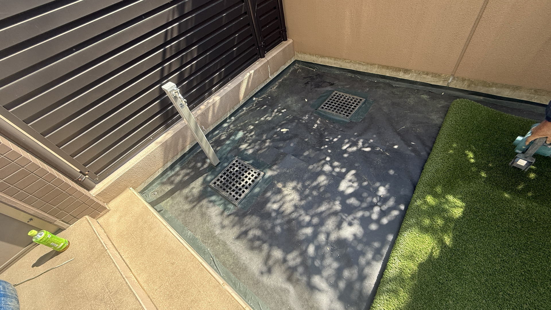 雑草対策として人工芝の下に 防草シートを敷いています。