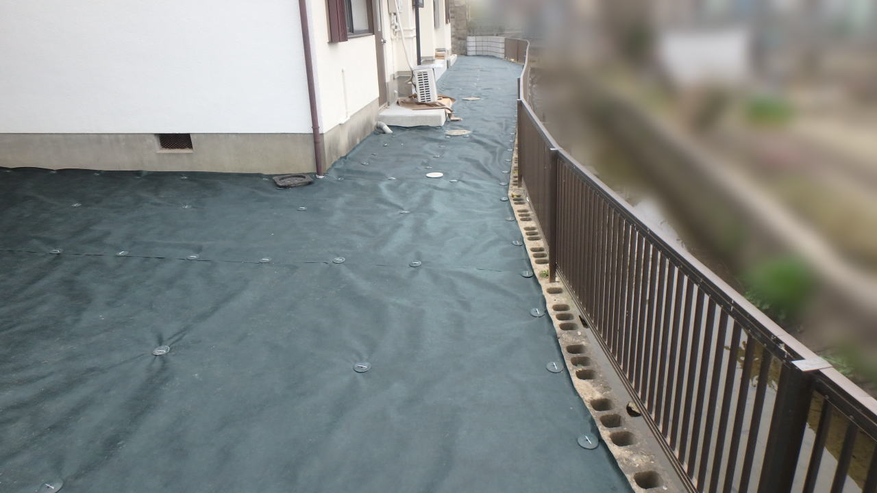 既存の壁の塗装を塗り替え、道路沿いに目隠しフェンスを設置しました |