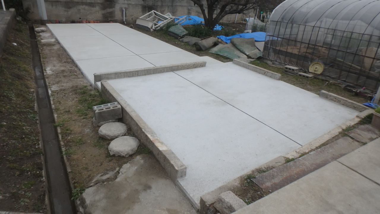 土間コンクリートを打設し、刷毛引き仕上げにしました |