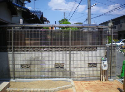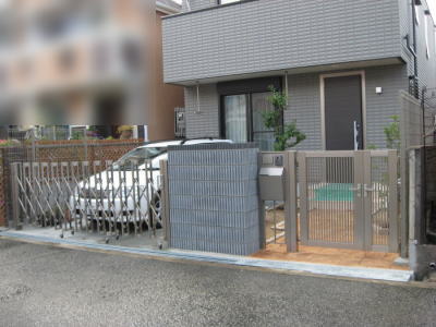 6/1 伸縮門扉設置・フェンス設置・ピンコロ並べ |