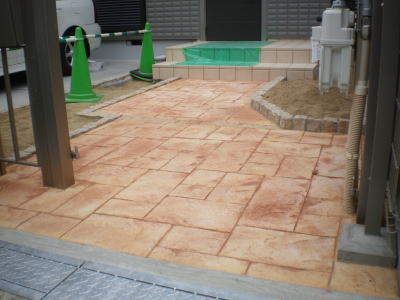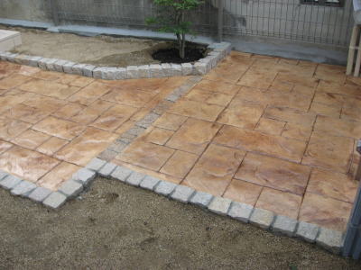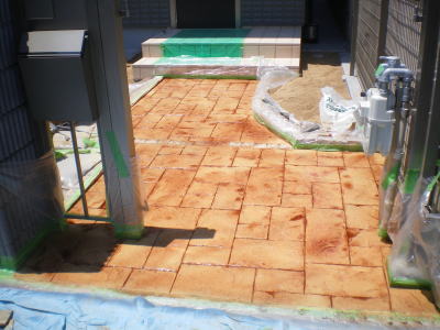また一部スタンプコンクリートを補修した為、後日この部分もシーラーを塗って仕上げる予定です