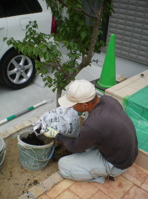 シーラーを塗って仕上げる時に植木の移植なども行う予定です |