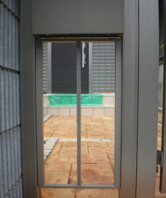 黒柴犬の仙太郎君が伸縮門扉の下から抜け出さないようペットガード用のものに取り替えます