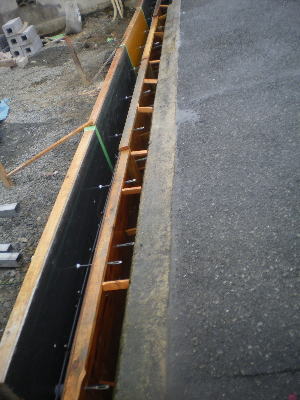 5/29 側溝かさ上げ・添えコンクリート打設・伸縮門扉柱・独立基礎・伸縮目地設置 |