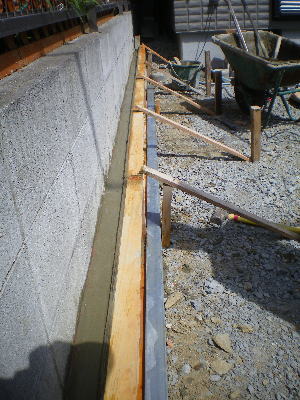 型枠をさらに固定し、添えコンクリートを打設しました |