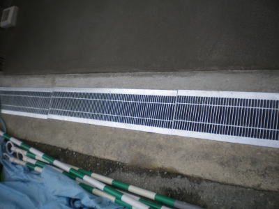 アプローチ前は人の出入りを考慮して滑りにくい縞鋼板付きのグレーチングを設置しました